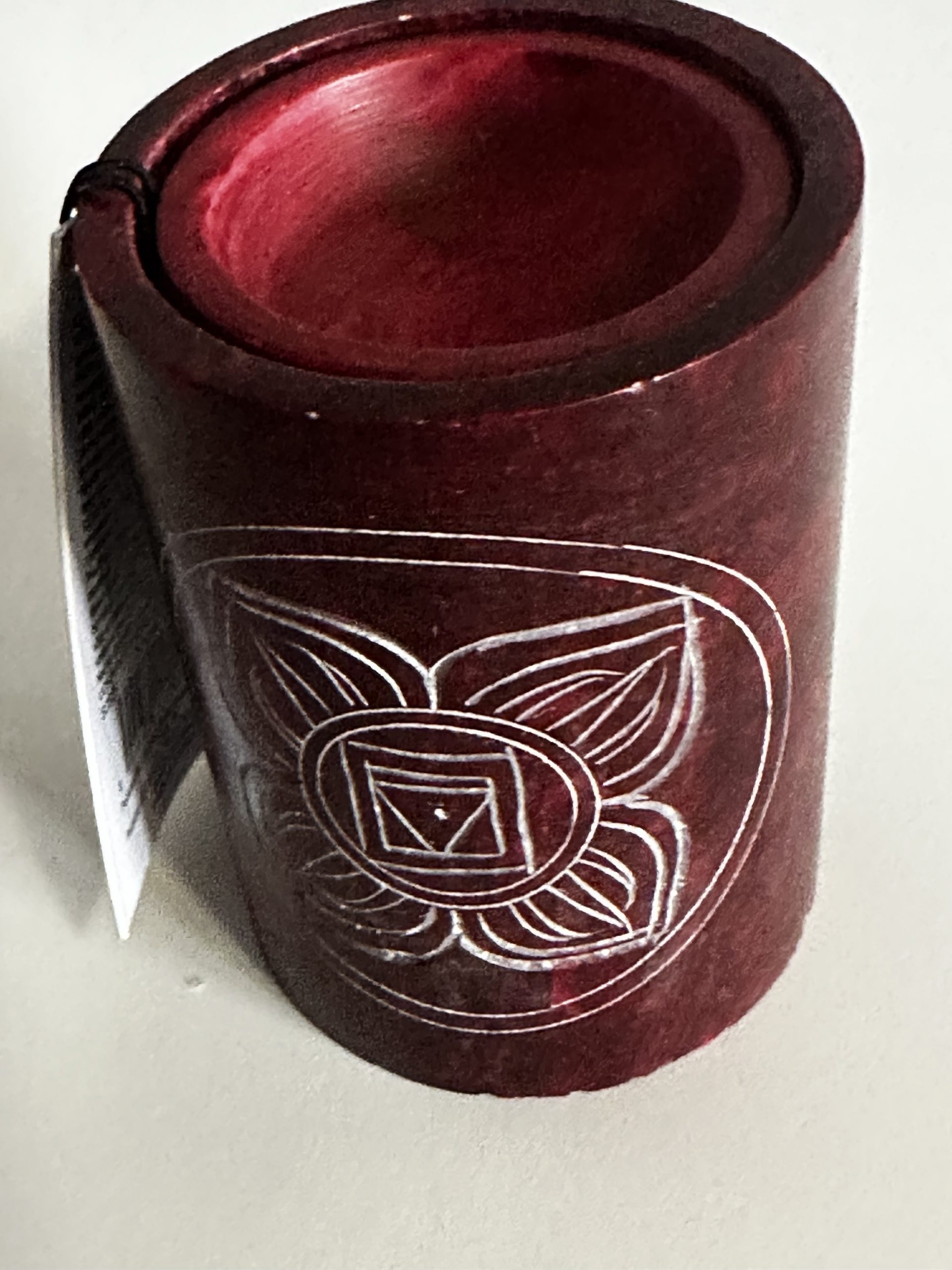 Despierta la energía sagrada de tu espacio con este quemador de aceite artesanal en piedra de jabón, creado para canalizar y armonizar la vibración de los chakras azul y rojo. Una pieza que une fuego, aroma y energía en un solo ritual.