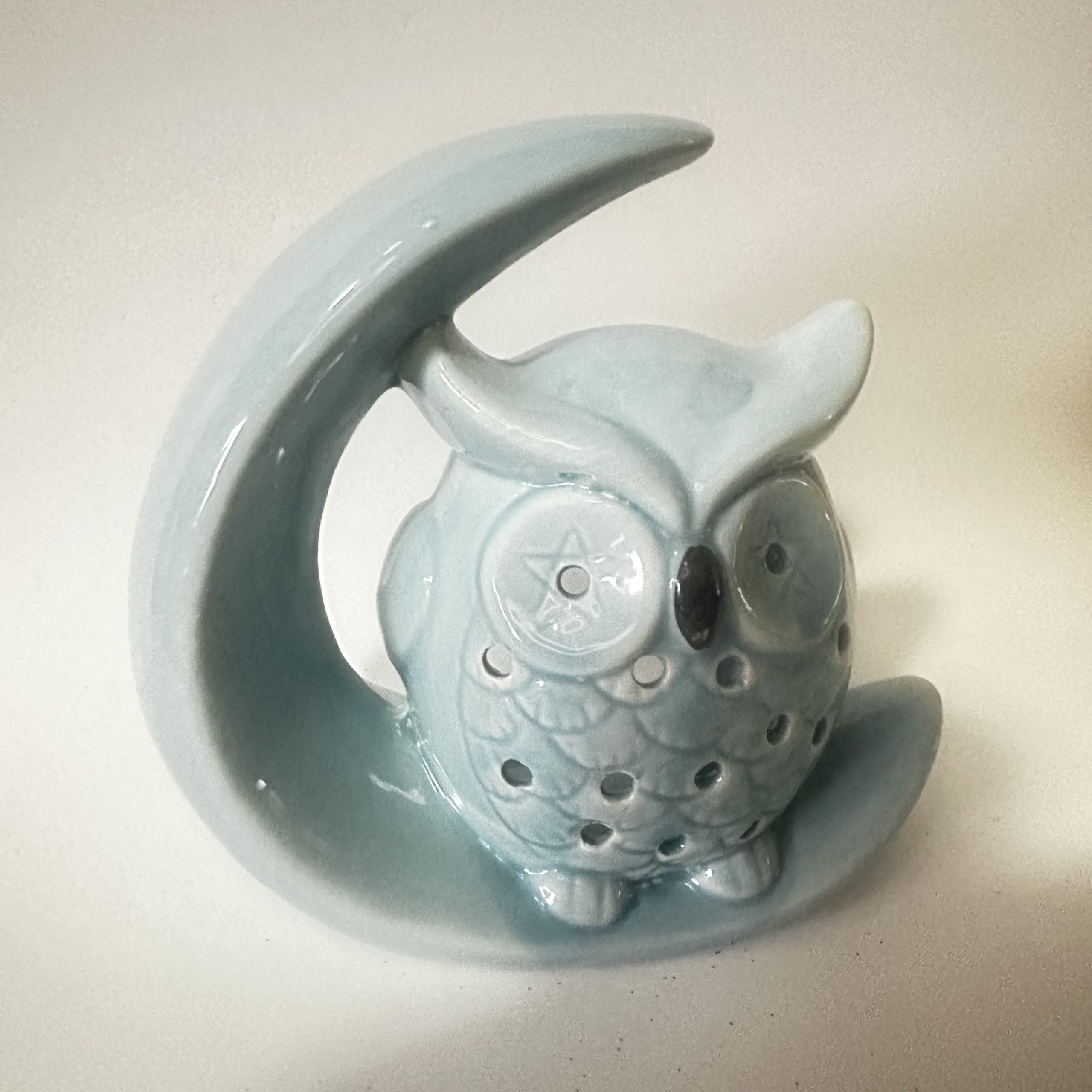 Este sahumador de cerámica Búho y Luna no es una pieza que atrae protección, sabiduría y equilibrio.
